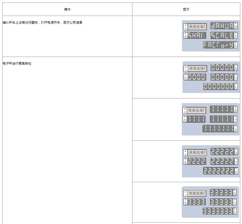 6. 本厂的电子衡器产品,要求客户在使用前,应进行经常性的计量校验。建议备一标准砝码时时校对之,或与其它正常的电子秤进行称量对比校对。如发现异常,应及时送有资格的检定维修中心处理,否则其后果由用户自行承担。