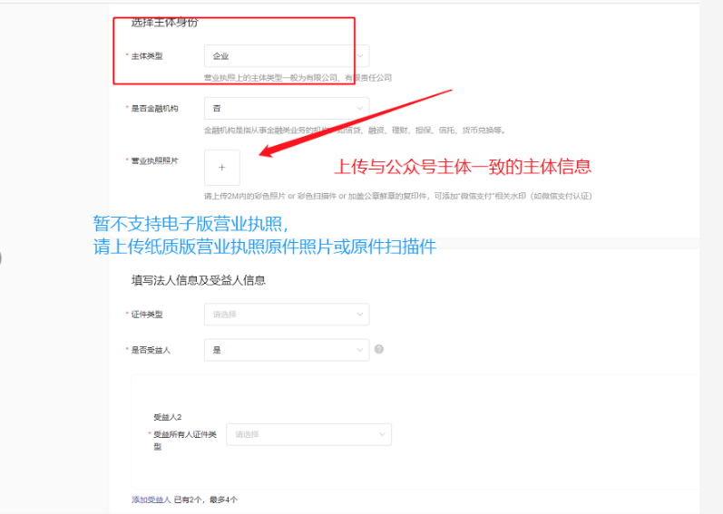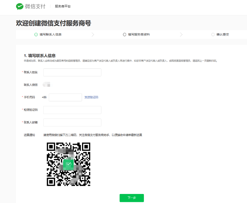 (二)服务商添加特约子商户(即门店独立后台子商户),按照提示要求填写资料,申请子商户,支持个体户申请。