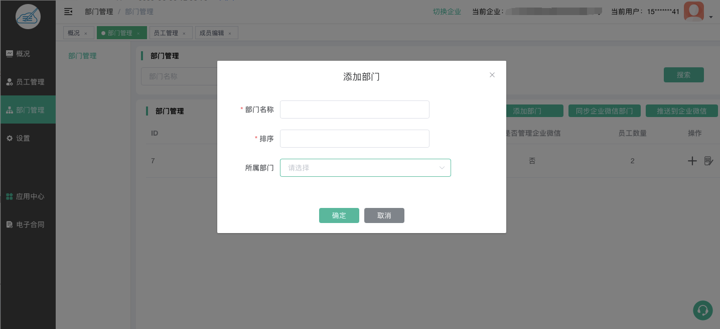 权限:默认为部门设置的权限,如果开启并设置独立权限,则员工登录企业管理PC端可以管理部门和员工。