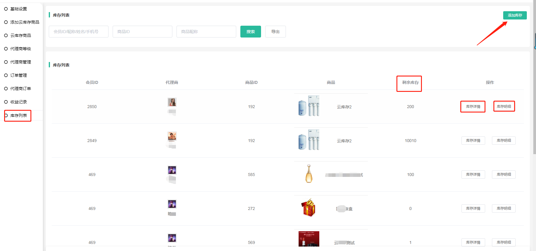 查看代理商的商品库存信息