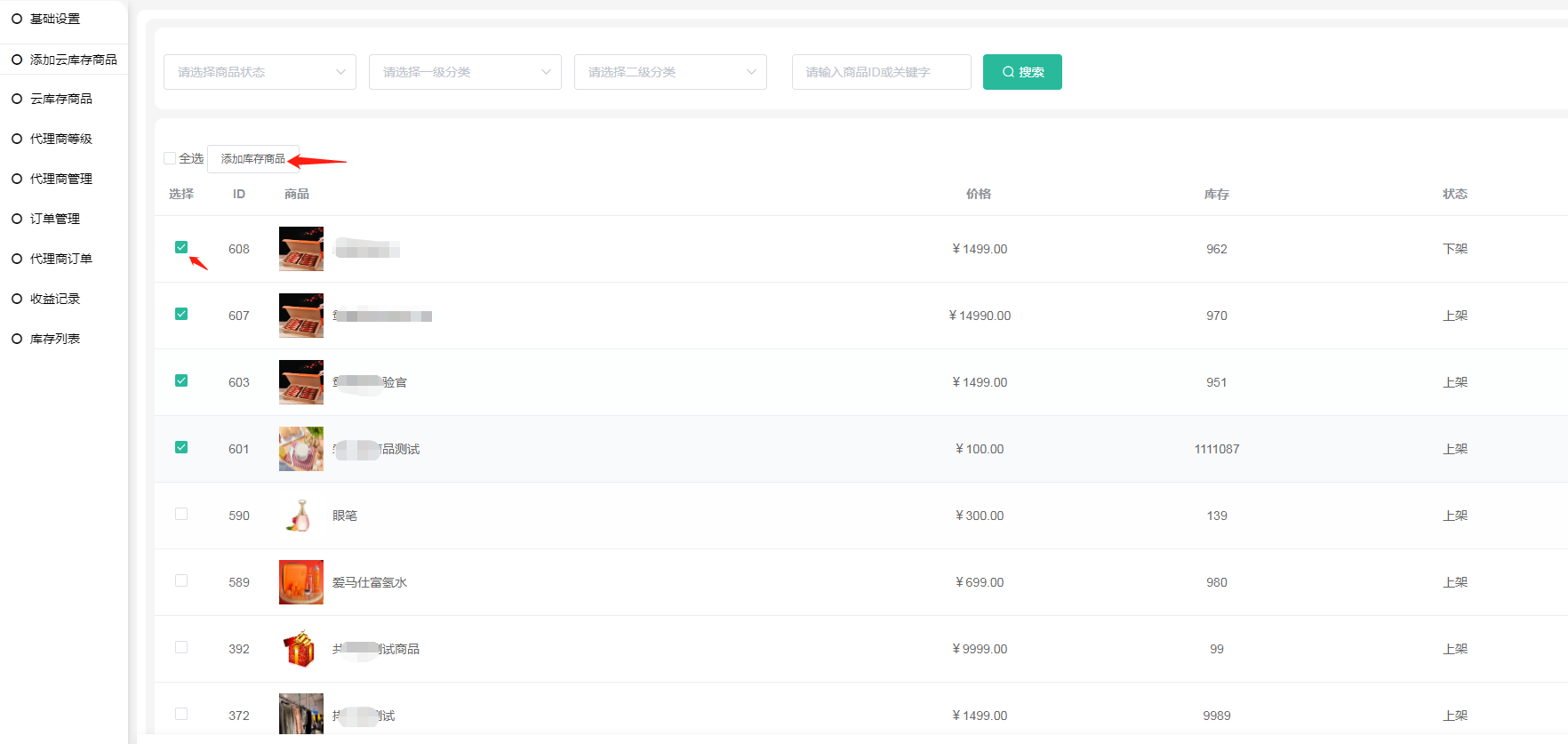 上方添加了云库存的商品,商品会在云库存商品中显示