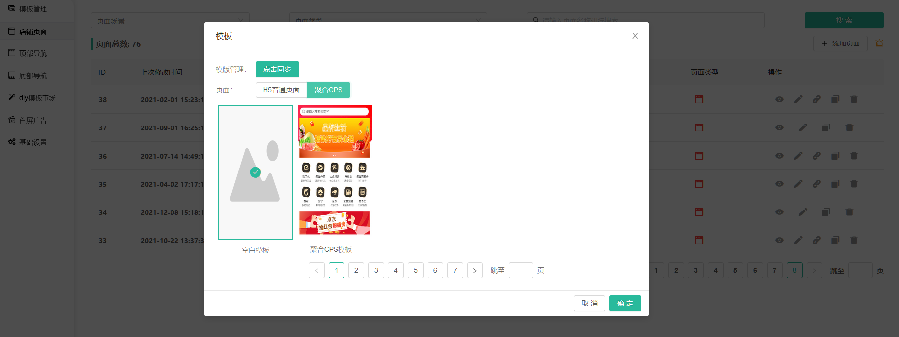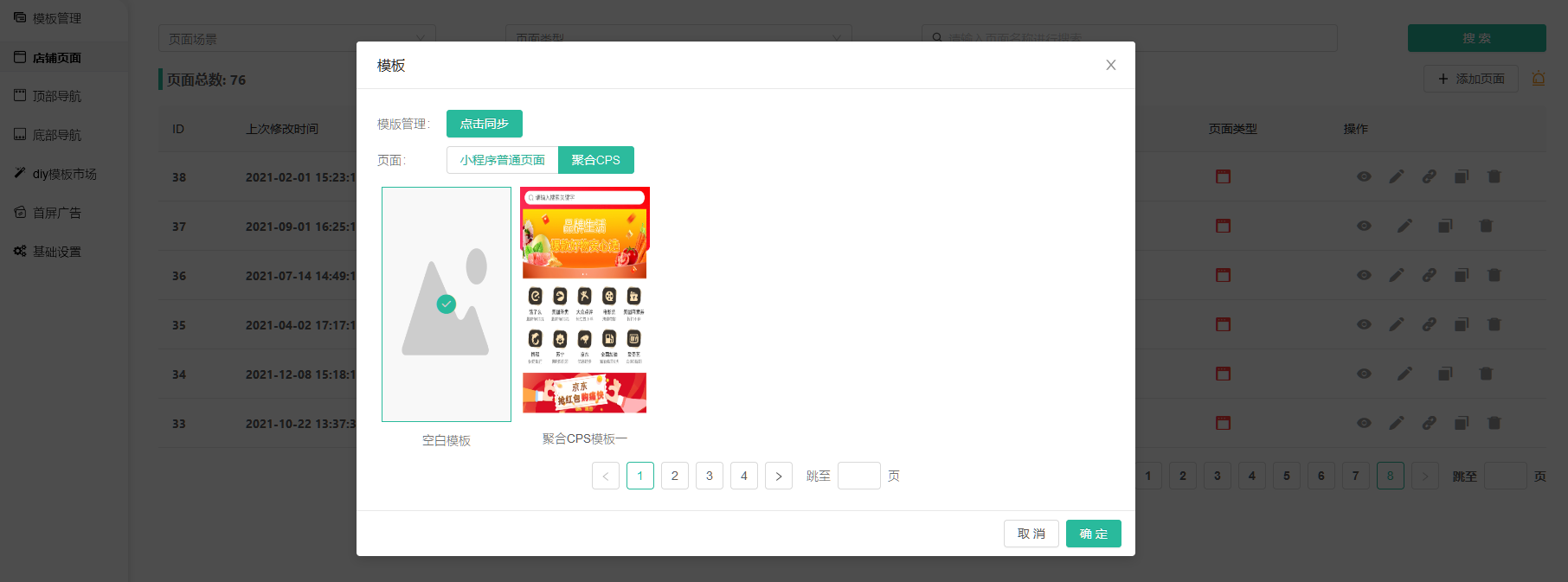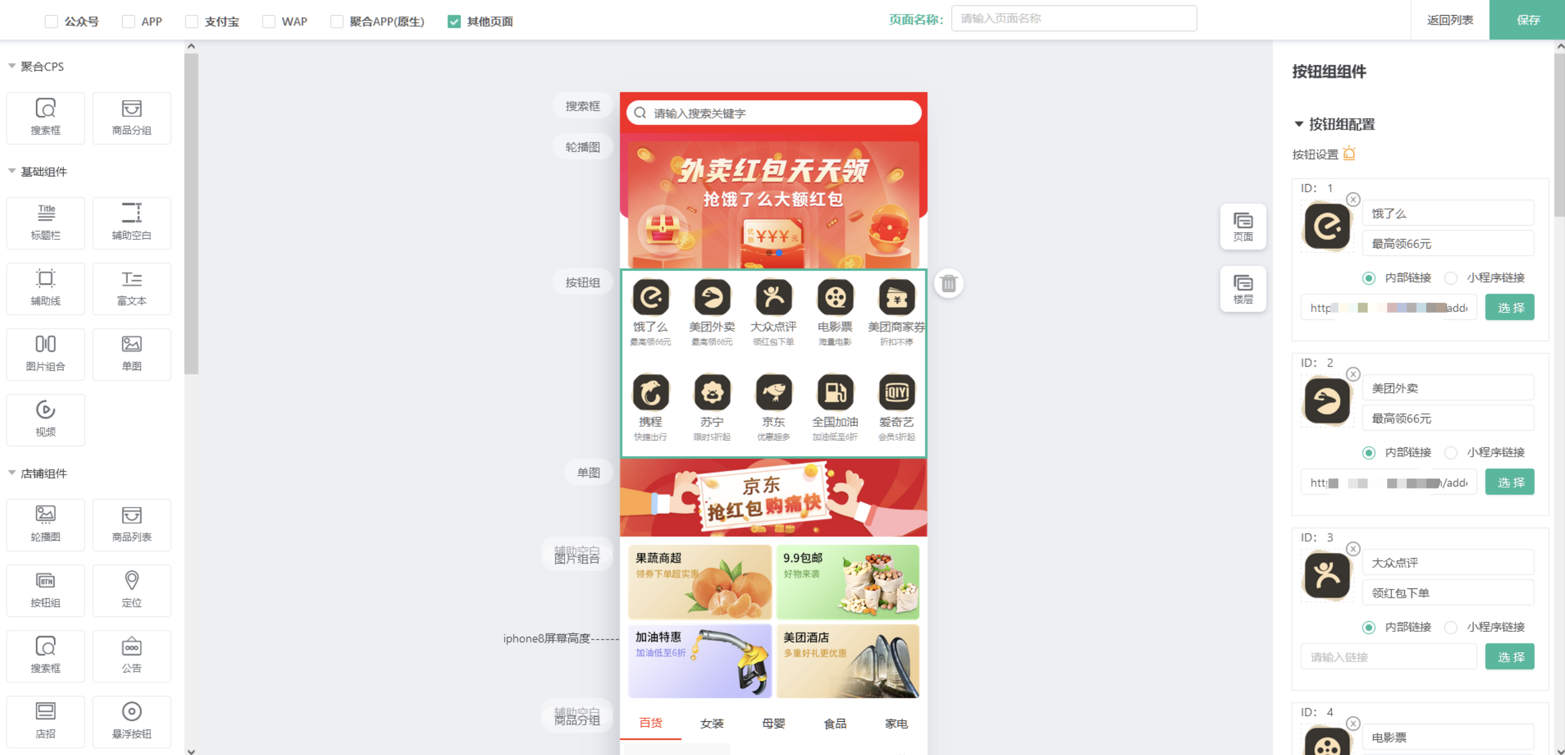 点击创建自动生成模板预设的所有聚合CPS资源设置,也可以通过装修功能进行修改跳转链接