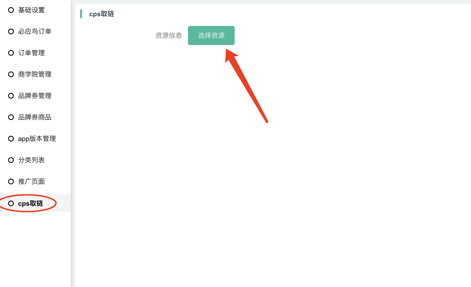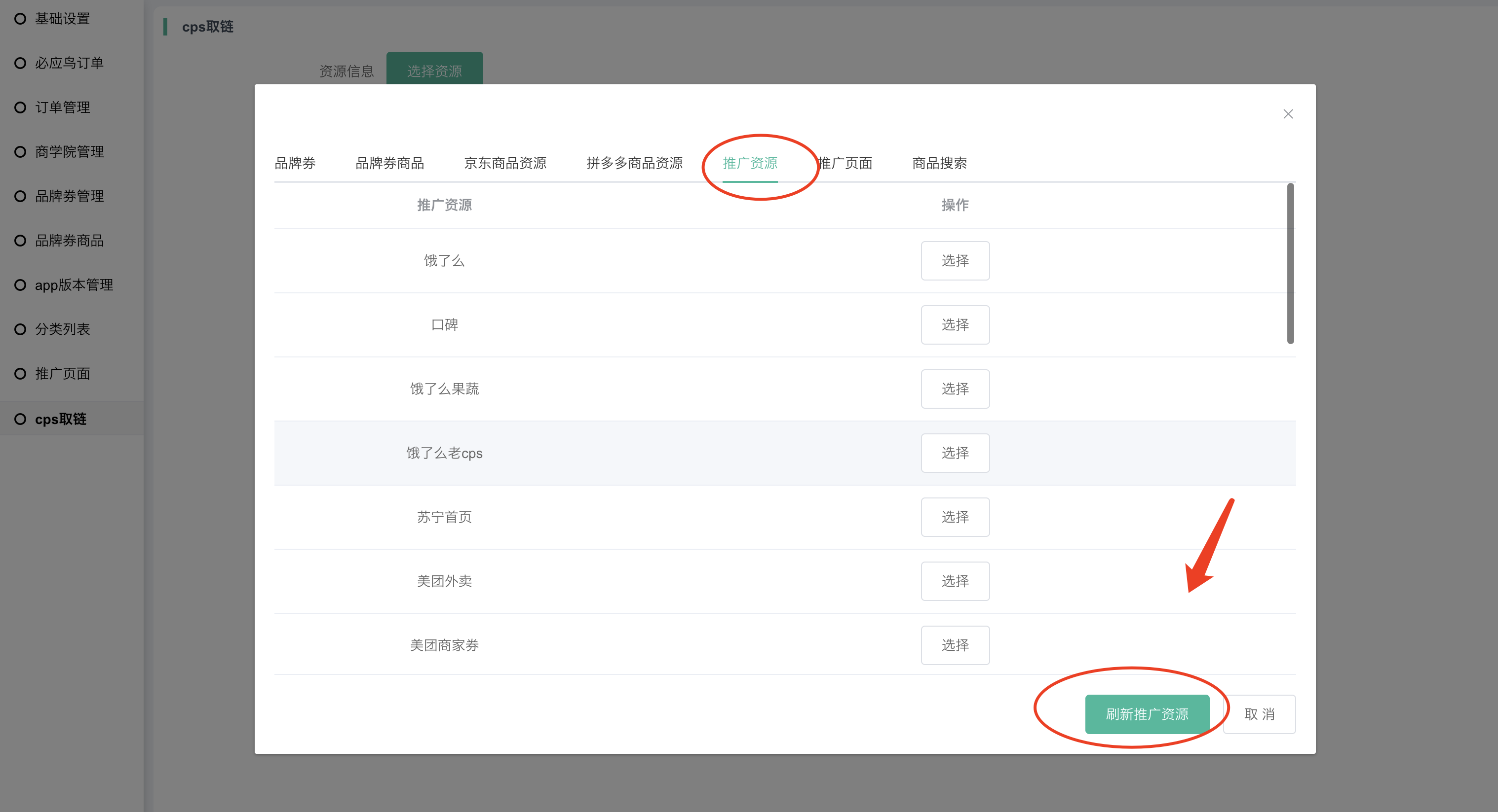 1、在聚合CPS插件---CPS取链--选择资源中刷新推广资源,如下图: