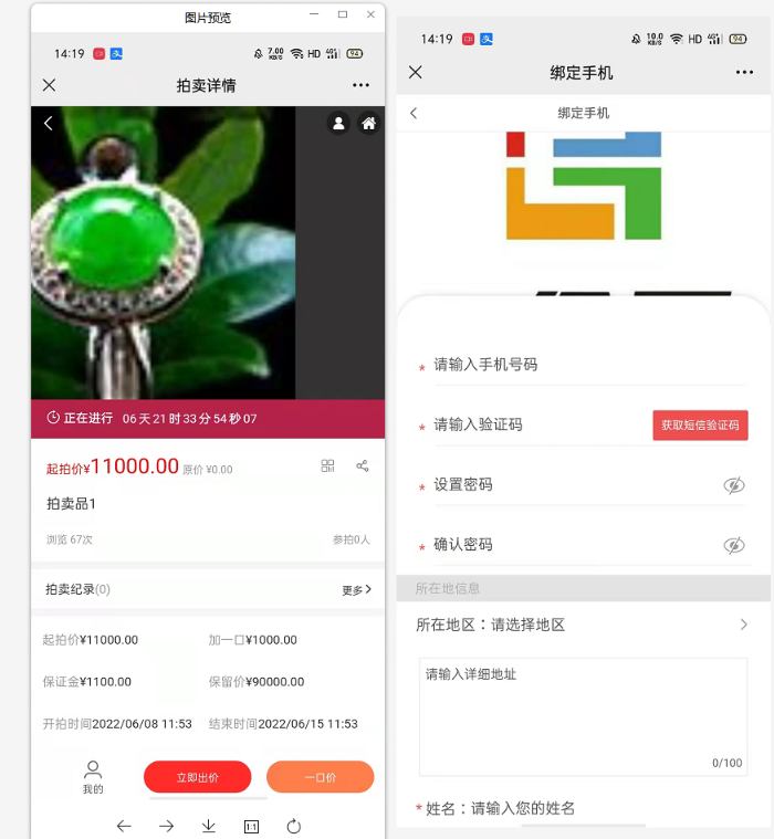 聚合页中,点击“我的”图标(如下图),进入拍卖会员中心,查看会员参与的拍卖,保证金记录、我的收藏等