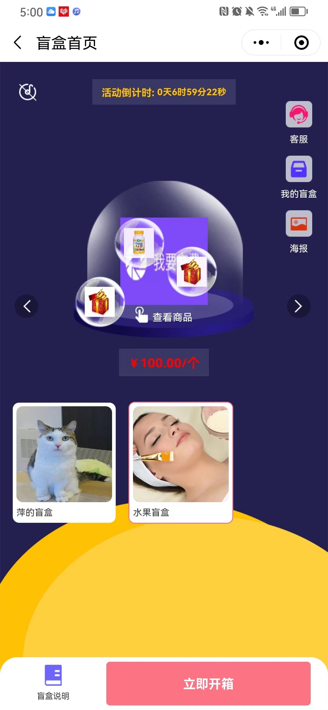 复制首页链接进入盲盒首页,该页面显示所有开启的盲盒活动