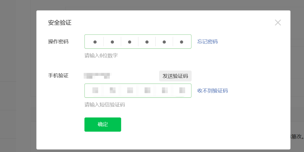 输入API密钥,内容为32位字符,包括数字及大小写字母。点击获取短信验证码
