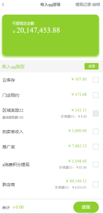 收入、余额提现,后台审核后,前端推广中心--收入--右上角提现记录--显示确认收款按钮(仅公众号、小程序,云打包APP显示,聚合APP没有)